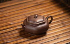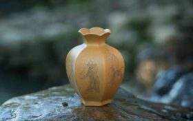以“水平”之型容“合欢”之神,上下合一,饱满且莹润;中线隐于壶间,望之有棱,抚而无锋,圆转动人;截盖接于短颈进而过度达到壶身,严密精谨,一气呵成;剑流出锋爽利,秀丽而有力量,有动势之感,流把比例和谐统一,骨气相合,脉络相连。