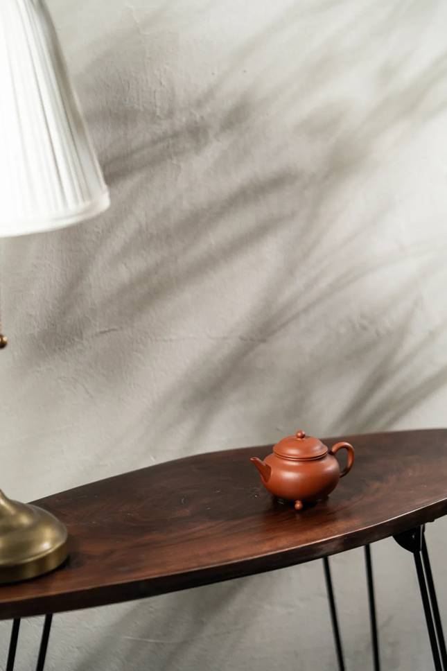 质延古意,融水平之形神。壶腹阔而饱满,气韵贯通;肩部挺拔,刹凹精密;壶流精巧,剑流隽秀,利落分明;足似圆球,三足鼎立,钮与足应;典雅中有秀骨,古朴中寓清气,整壶和谐统一,玲珑有趣。