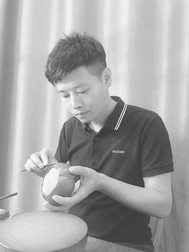 孟飞,男,一九八五年生于江苏宜兴。二00五年入行从业,潜志壶艺,善于方器、筋纹器型的设计与制作;二0一七年拜入制壶名家吴界明先生门下,归于“柿园”,一脉承传,心手见通。二0二四年加入“宜兴市醒石陶社”醒石学员。