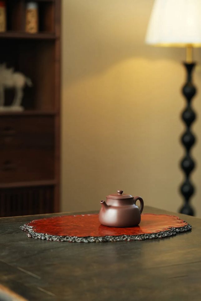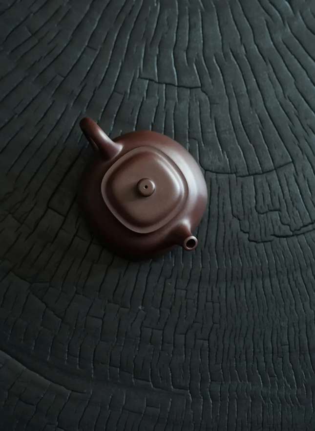 化方为圆,融圆于方,刚柔相济,方圆一体;若篆籀之秀劲厚润,又似魏碑之刚健浑朴。壶身似圆,至直颈处转为方口,圆嘴圆把,古朴素净,自然无饰。在直曲中变化,不见雕琢之痕,洗尽尘滓,独存孤迥。