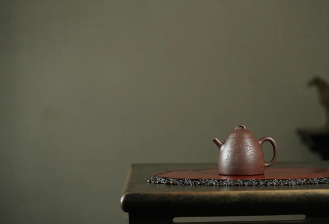 半丁壶身镌“龙吟”二字,笔力遒劲如凿石;刻绘飞天蟠龙图腾的神秘意象,龙首昂然、鳞爪怒张,与壶之气度一道,表华夏文明中龙之权力与威仪。执“陇权”,若见沙海驼铃摇荡,耳畔龙吟隐隐。