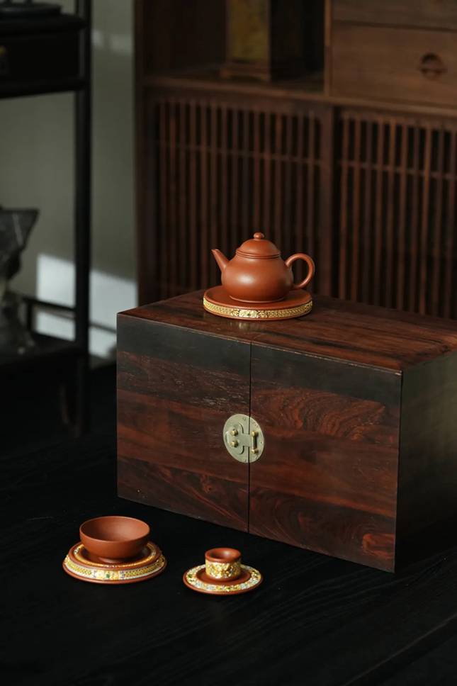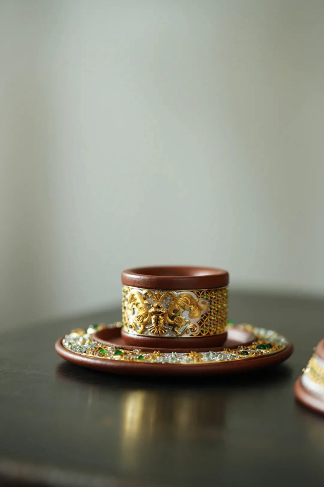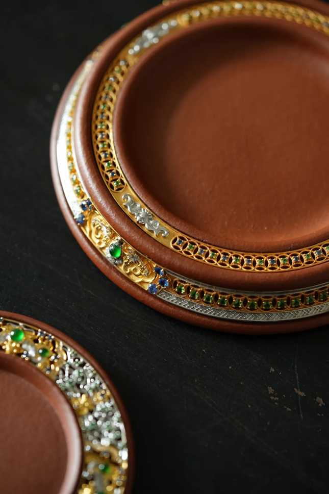 以黄金为骨架,在紫砂的红褐底色上构建出华丽层次,