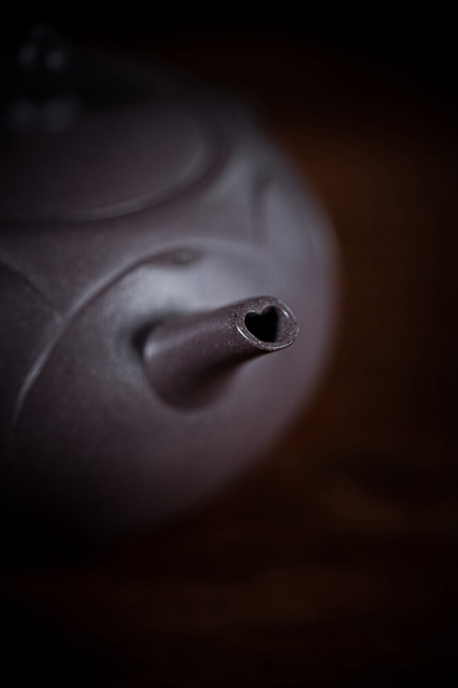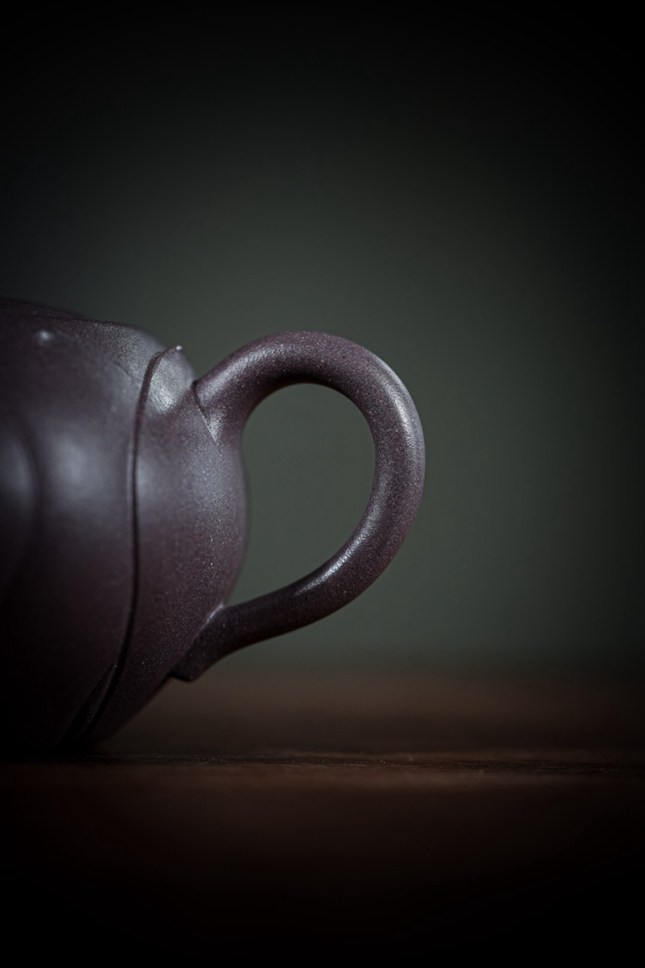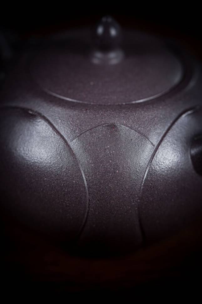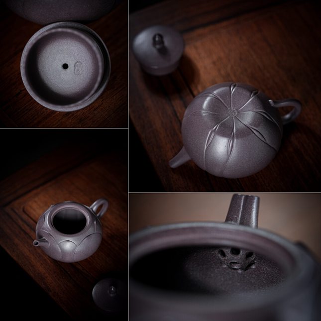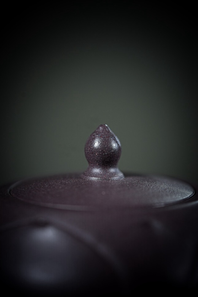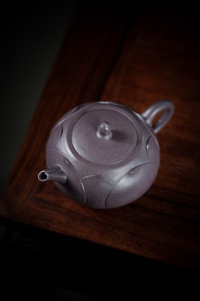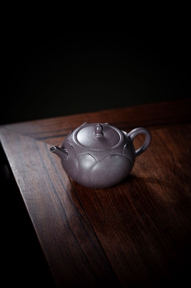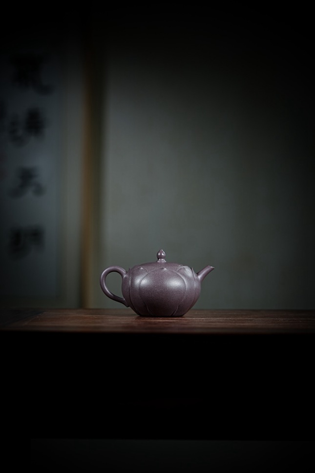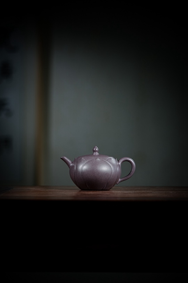 在紫砂艺术的天地里,一把壶便是一个世界。实力派匠人董俊峰老师,承名师冯伯明之艺脉,蒙省大师范洪泉之悉心指点,所创制的这把「莲心」壶,便是将东方禅意与紫砂风骨融于一体的匠心佳构。壶以“莲”为形,取“心”为意,精选上乘青灰泥,泥色沉静温润,宛如月下初绽之莲瓣,内敛而高雅。壶身摹刻莲瓣纹理,线条流畅婉转,于方寸间勾勒出莲在水中轻盈摇曳的姿态,每一道弧线的转折,每一处纹理的深浅,都凝聚着匠人对自然物象的细致观察与精妙转化。小巧精致的壶流,确保出水爽利,断水果决;弯曲有度的壶把,契合掌心,端握舒适;而那画龙点睛的壶钮,恰如一枚初绽的莲心,灵动生趣,与整体气韵和谐共鸣。此壶不仅是一件可观可赏的艺术品,更是一把能与茶人朝夕相处的实用雅器。当香茗入壶,茶烟袅袅升起之际,仿佛能涤荡尘世喧嚣,引领使用者步入一个如莲般清净、恬淡的茶境,在品啜之间,完成一场艺术审美与生活意趣的完美交融。
