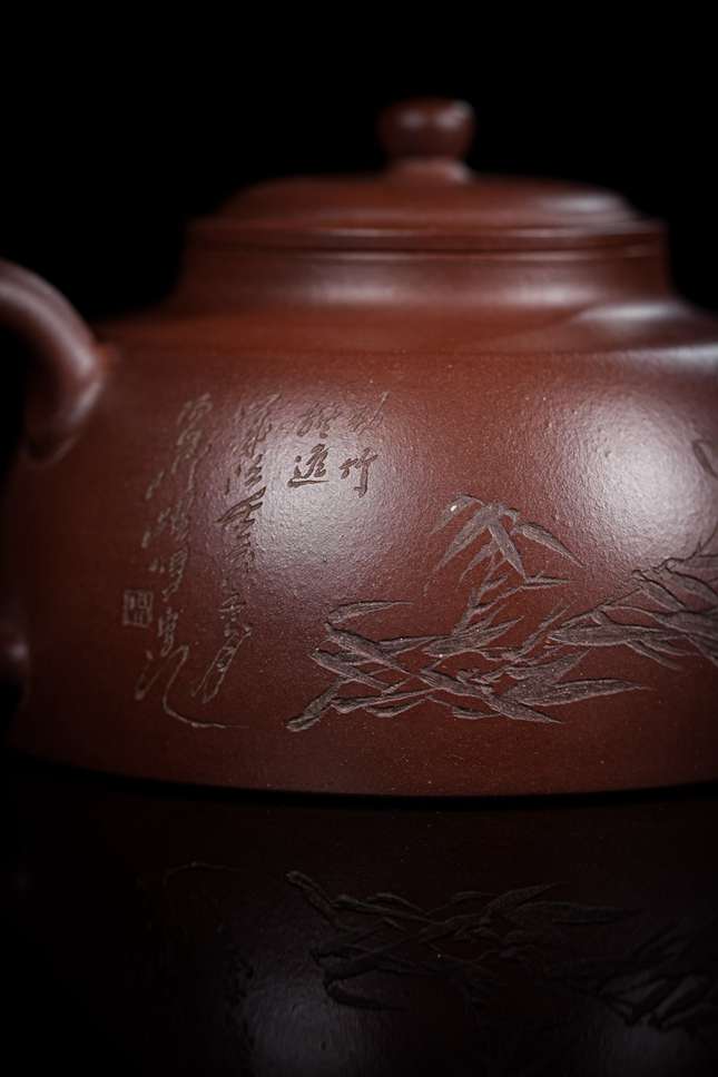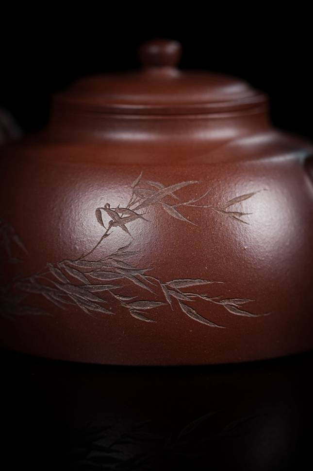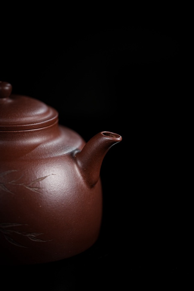壶身之上,由匠人亲手阴刻的竹叶更是点睛之笔,刀法苍劲利落,叶脉清晰可见,近观笔触生风,远望清雅脱俗,将“清意”之名与文人君子之风刻画得淋漓尽致。每一把“清意”壶底落款清晰,内壁留有手工接片的独特印记,刻画的竹叶亦不尽相同,它不仅是日常品茗的可靠伴侣,更是一件能在时光流逝中愈发温润、承载着清雅生活态度的收藏级艺术品。我可以继续为您优化调整。