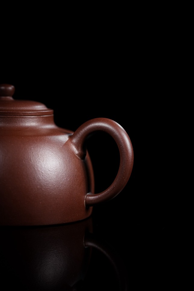 其375CC的容量,恰到好处地服务于二三人对饮的温馨场景,兼具了实用与茶席上的视觉平衡。全手工拍打成型的技艺,使得壶体线条流畅自如,从圆润的壶肩到出水爽利的壶嘴,再到贴合掌心的壶把,每一处细节都无模具匠气,唯有盖沿与壶口紧密吻合的严谨匠心。