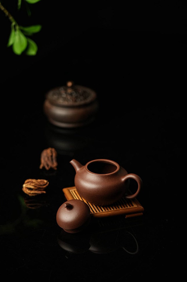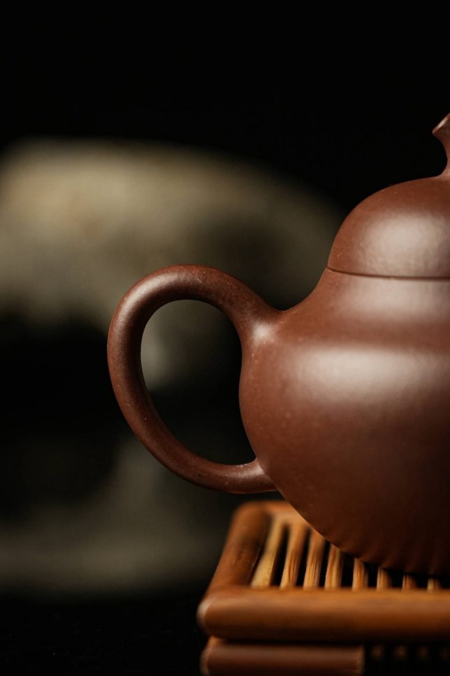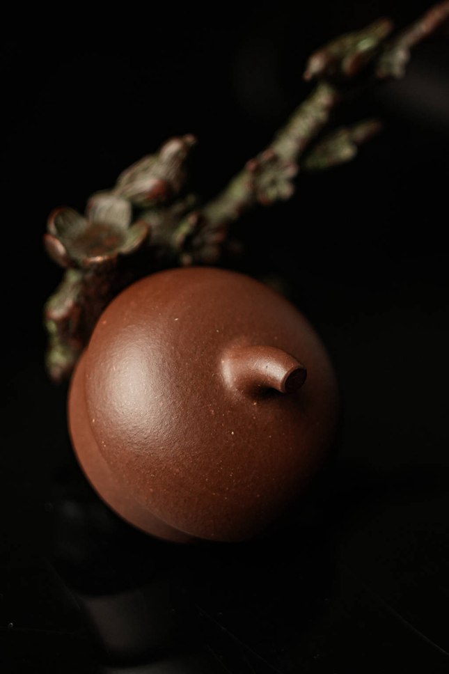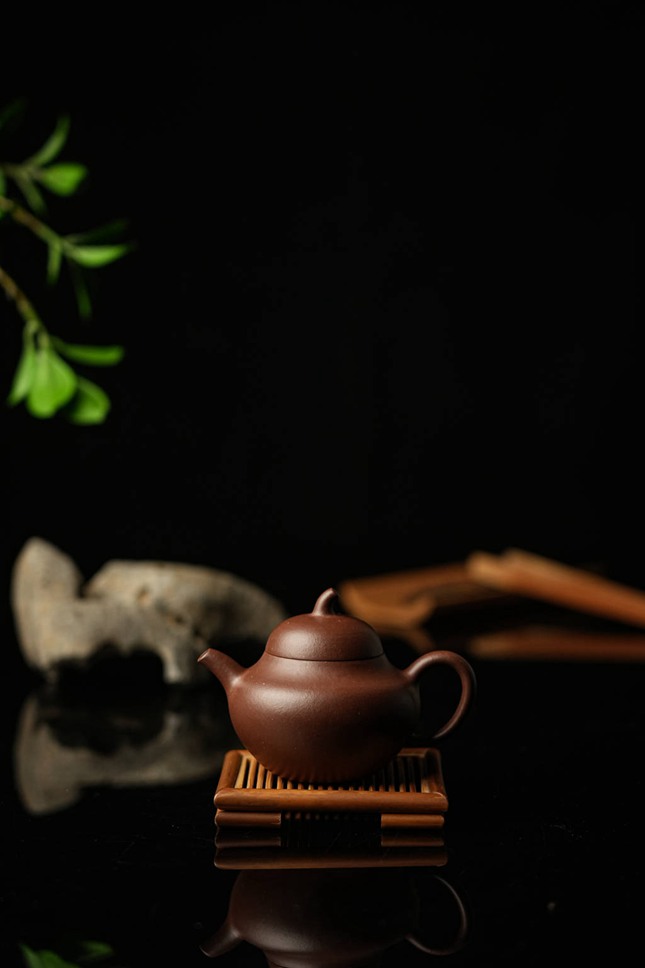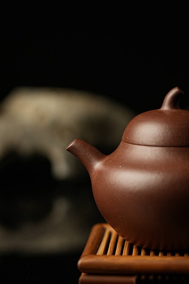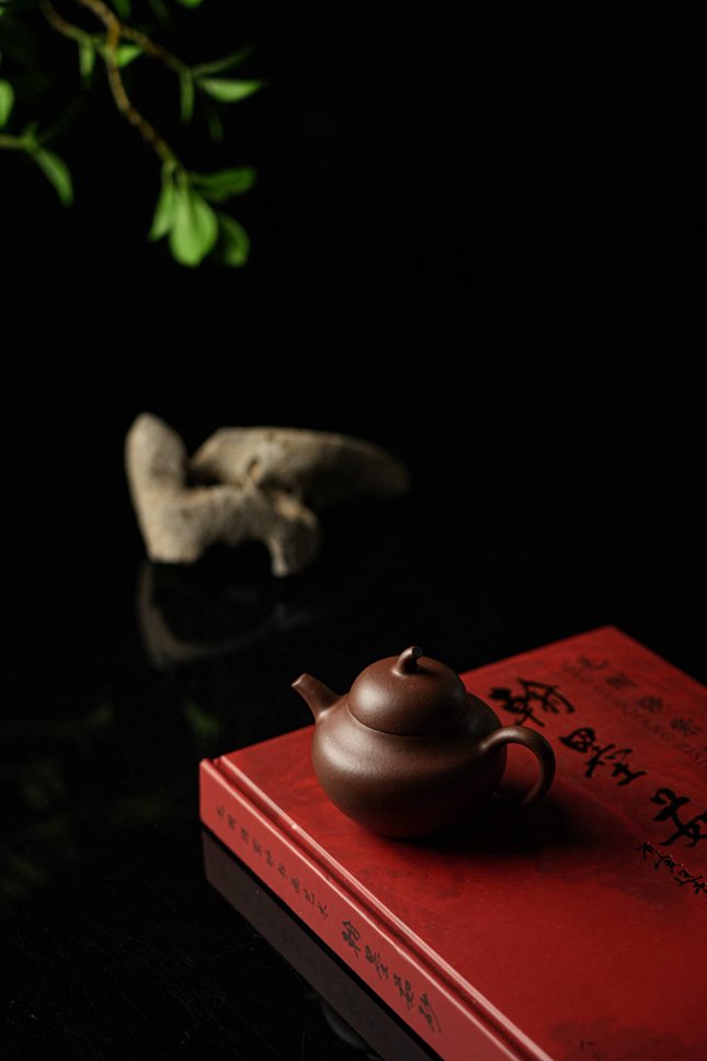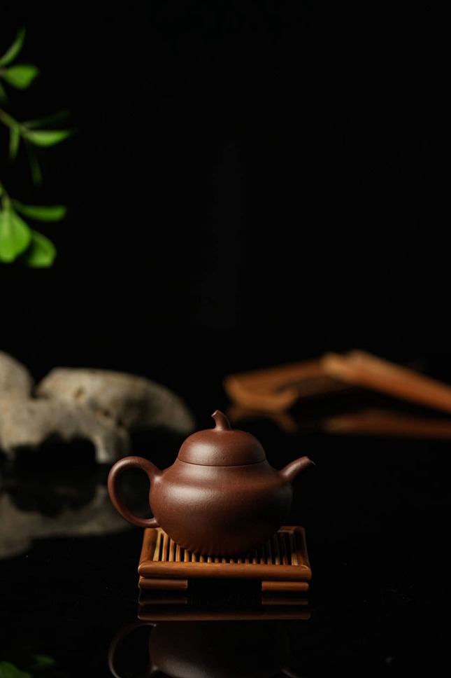 整器选用优质紫泥抟制,泥色温润古雅,容量150cc宜泡宜赏,兼具实用与收藏价值。吴倩老师以实力派匠人的功底,将自然之物升华为案头雅器,使人在品茗之余,也能感受到“似真似幻”的意境流转——既有具象的亲切,又不失抽象的逸趣,是一件充满朴意与生趣的紫砂佳作。