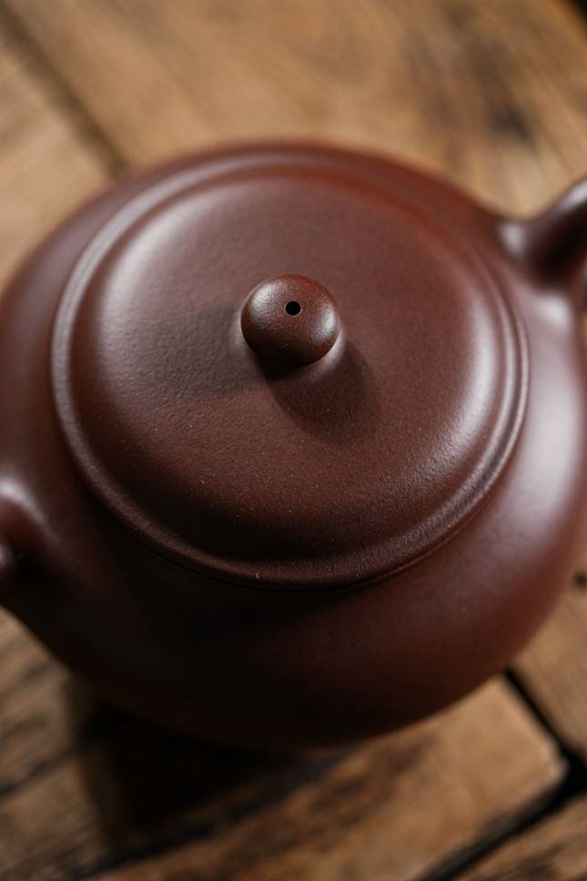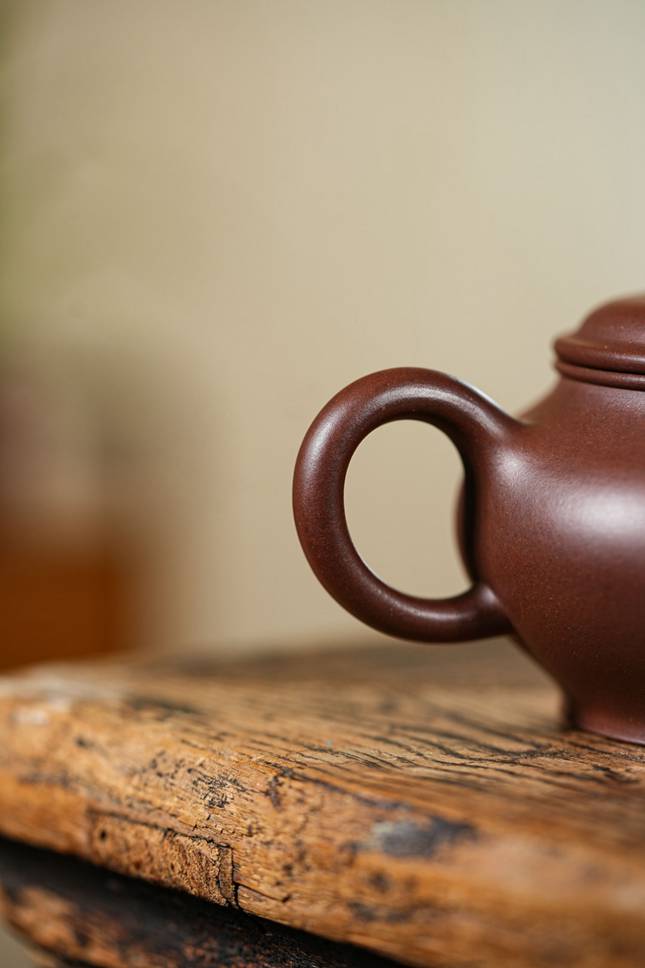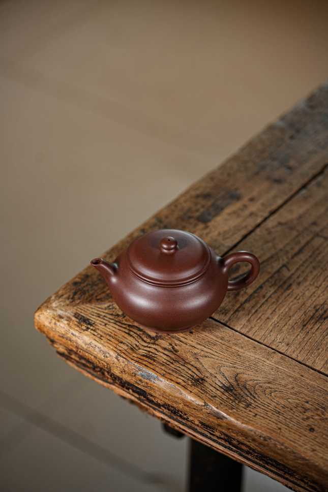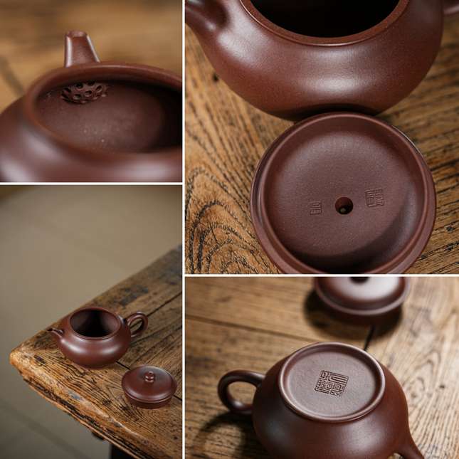 作者甄选优质紫泥,泥色醇和温润,质感细腻如绸,经茶汤泡养后更显古朴雅致。实用性与艺术性在此壶上完美统一:壶盖与壶身密合无间,仿若宫灯之灯罩与灯体严丝合缝;壶嘴出水爽利如银练,断水干脆;壶把端握舒适,与手型自然契合。