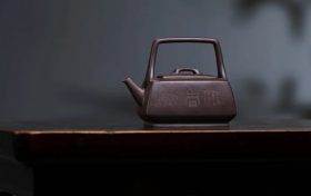 非宁静无以致远,此器肃穆。壶身底部四方向上收敛,化方为圆。四角作内凹抽线,势态上扬,与盖钮线条契合。流如出鞘,…