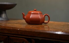 紫砂筋纹器是古往今来的经典壶式,是以对称的花瓣为造型。此壶通体作菱花式,盖、身浑然一体,均分六瓣,组成棱线凹凸…