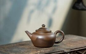 此壶为高级工艺美术师陈老师手制,家藏紫泥胎质温润。200cc容量,造型扁稳古朴,线条爽利。壶嘴出水劲道,与纤细…
