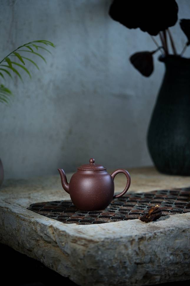 张涵涛老师这把以“高灯”为题的紫砂壶,堪称传统经典器型的典范之作。选用上乘底槽清泥料,色泽温润如玉,质感古朴醇厚,225cc的黄金容量恰如其分。
