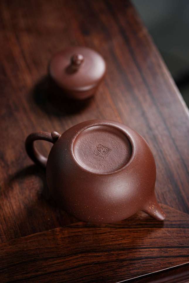 在紫砂艺术的长河中,一把壶所能承载的不仅是香茗,更是匠人投射其中的气韵与风骨。张涵涛老师此件「秋水」壶,便是这样一件形神兼备的匠心之作。壶名“秋水”,意境高远,取自“如夏花之灿烂,若秋水般清澈”之哲思,完美诠释了其既具生命之热烈、又含秋水般明净清冷的独特气质。壶体以珍稀底槽清泥抟制,泥色温润,质感醇厚,230cc的容量于手中盈握,更显亲切。