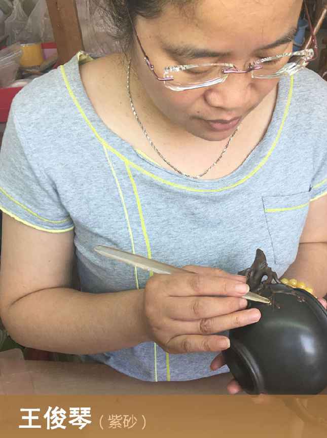 王俊琴——国家级工艺美术师 1973年生于江苏宜兴,91年高中毕业于丁蜀中学,在紫砂村学习制壶。2016年地质…