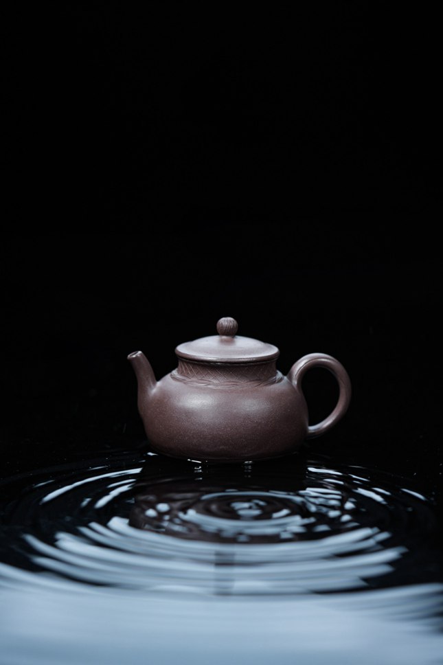 注入清水,茶汤穿过盖孔,如细雨洒落舟篷;倾出香茗,流口收敛徐下,似渔歌轻曳江面。董俊峰将“渔”之魂——那份超然物外的隐逸与从容——悉数揉进每一道手工痕迹与每一处弧度过渡里。这不是简单的茶器,而是案头微缩的山水,是匠人滤尽喧嚣后,留给品饮者的一方精神汀洲。