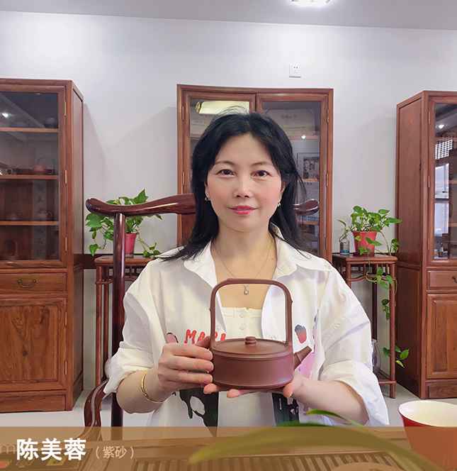 太湖之滨有邑曰丁蜀,其无论男女、不分老少,盖悉紫砂之道。邑中有女蓉者,自幼耳濡目染,更兼聪慧过人,邑人观其壶,皆奇之。及至二八,有好事者引至制壶名家丁亚平门下,始得名师提耳。又三年,移居荆邑,得拜正高级工艺美术师、江苏省陶瓷艺术大师喻小芳为师,其鉴壶制壶更兼众家之长!时至今日,弄壶年已近卅,其风始成。善制光器,尤长竹器。其作品《合菱》获第七届“大地奖”陶瓷作品金奖,《梅桩》等作品被省内外多家博物馆收藏。