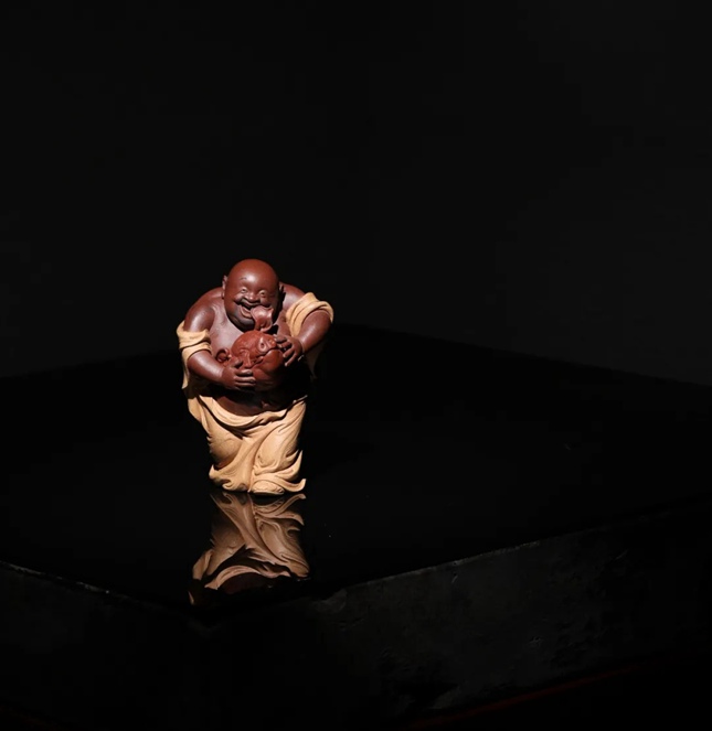 李强,男,一九七三年出生于陶都宜兴。一九八九年就读于无锡工艺职业技术学院工美专业。一九九二年实习于紫砂二厂徐秀棠雕塑工作室。一九九三年进紫砂工艺厂从事紫砂雕塑创作。一九九七年受聘于存敬斋(台湾)艺术实业有限公司任职工艺美术师,专工佛教造像创作。二零零四年自创木子牛陶艺工作室。