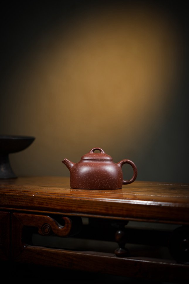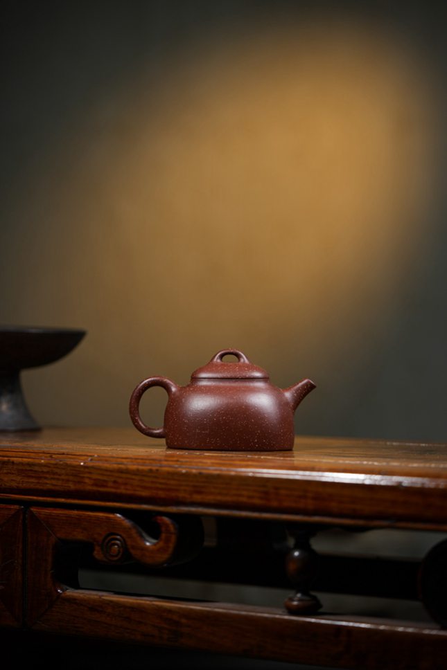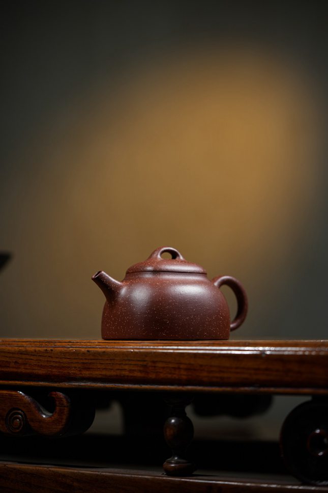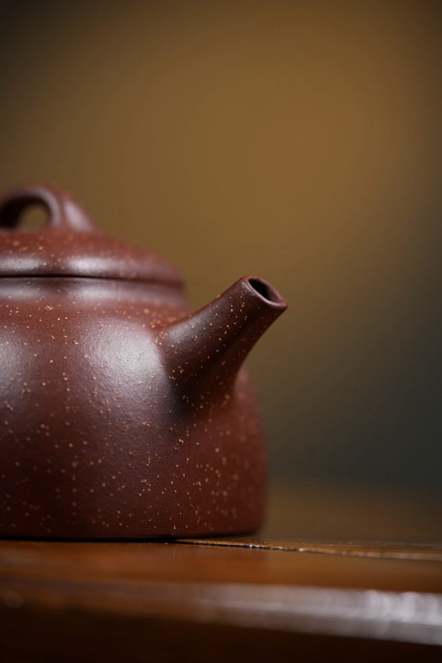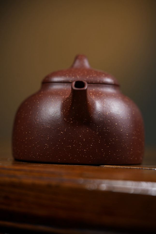 细观其质,砂粒隐于光润表层,触之柔中带刚,这是纯手工拍打才有的生命质感。壶虽小而力不逊,每一处细节都经反复琢磨,将紫砂“拙而不陋,简而不空”的哲学,凝于这一掌之间的天地。