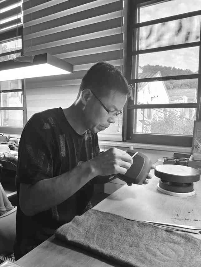周洪伟,男,一九七一年生于宜兴丁蜀蜀山。一九八九年从事紫砂行业,师从正高级工艺美术师袁国强,擅长紫砂器造型设计与创作,尤以方器见长。在继承传统的基础上,突破创新,追求新的境界与高度,具备一定的文化品位与艺术造诣,所创作品深得前辈与业界的认同和藏家的关注。在首届景舟杯初级职称类获得银奖,部分作品在全国性陶艺评比展览中屡次获奖。