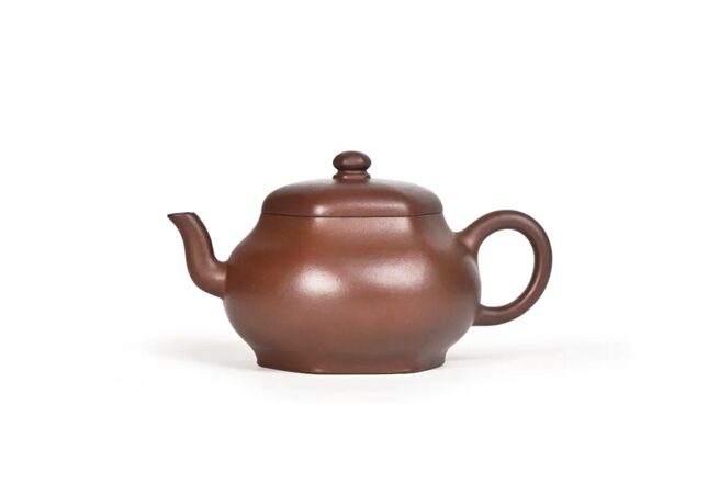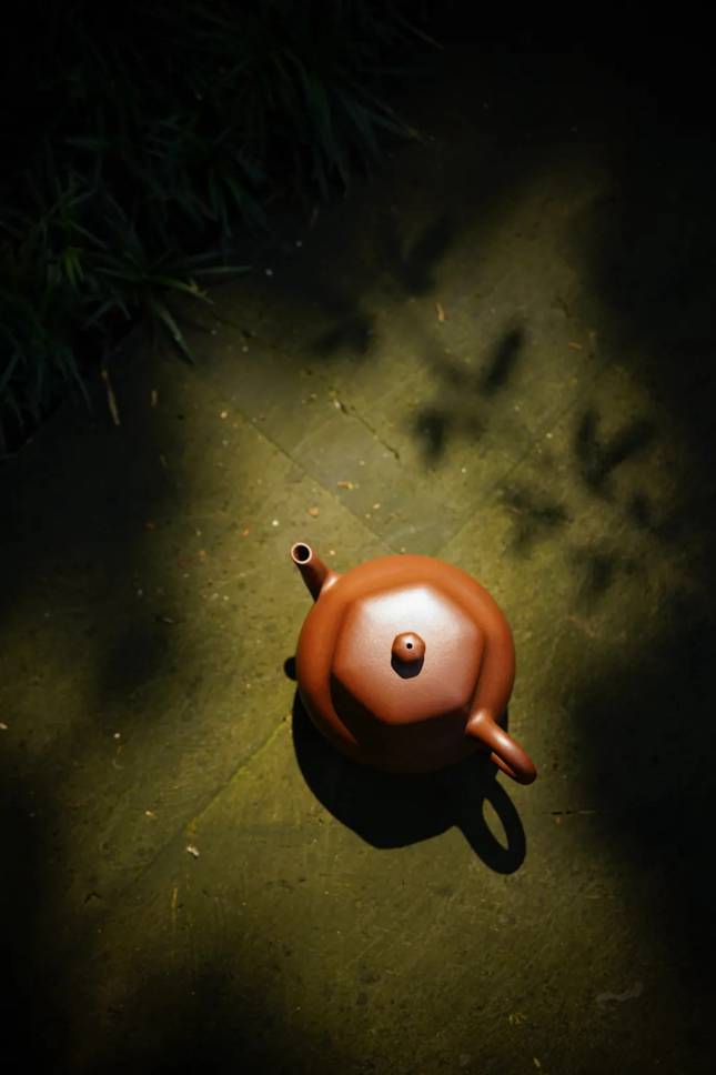 此拍品六方造型,具海纳百川,通古融今之势。选用原矿优质紫泥制作而成,泥质温润,色泽油亮,线条流畅,过渡与衔接自然、饱满。作者在继承古器原型的基础上,将自己对于现代美学的理解运用其中,使此壶更显秀美、柔和之意境。