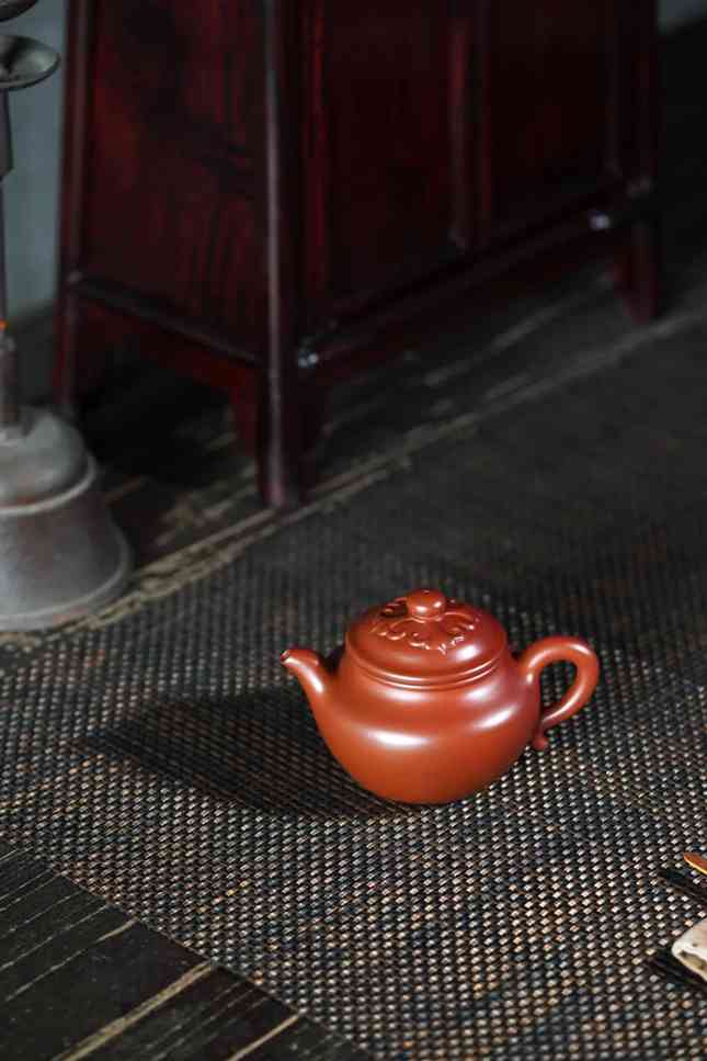 此拍品古朴素雅,壶体鼓腹若缶,弯流圈把,笠帽式壶盖与壶体结合得当,盖面塑如意纹,富有憨态意趣。上好朱泥抟制,瀹…