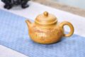 此拍品古朴素雅,壶体鼓腹若缶,弯流圈把,笠帽式壶盖与壶体结合得当,盖面塑如意纹,富有憨态意趣。上好朱泥抟制,瀹茶赏玩,可得雅趣。