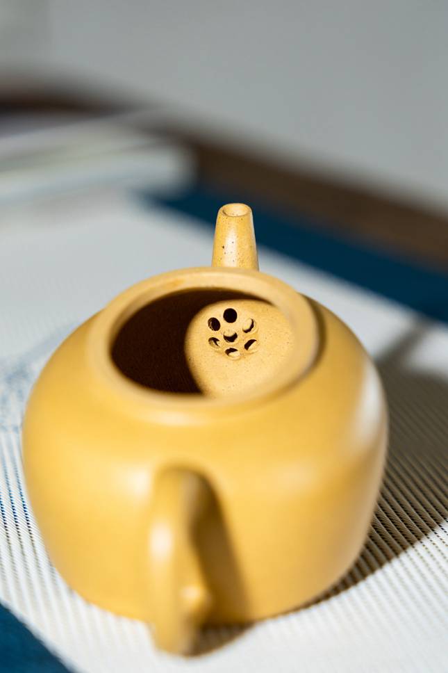 “金轮”之名,既呼应泥色之金辉,亦寓圆转如轮之形。在中国文化语境中,金象征华贵与永恒,轮则喻指圆满、循环与平衡。此壶恰似茶席上一轮静转的金月,寄托着对生活圆满和谐的向往,亦暗合茶道中流转自如、心手相应的至高境界。