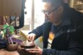 此作由惠老师倾心抟制,壶身比例匀停,细节刻画细腻入微。流、把与壶身衔接自然如生长而成,勾勒出灵动的空间韵律。整器兼具浑朴古雅之气与生动流畅之态,于静态中蕴藏动势,在传统形制中透现巧思,可谓“古朴中见匠心,简练处藏深意”。