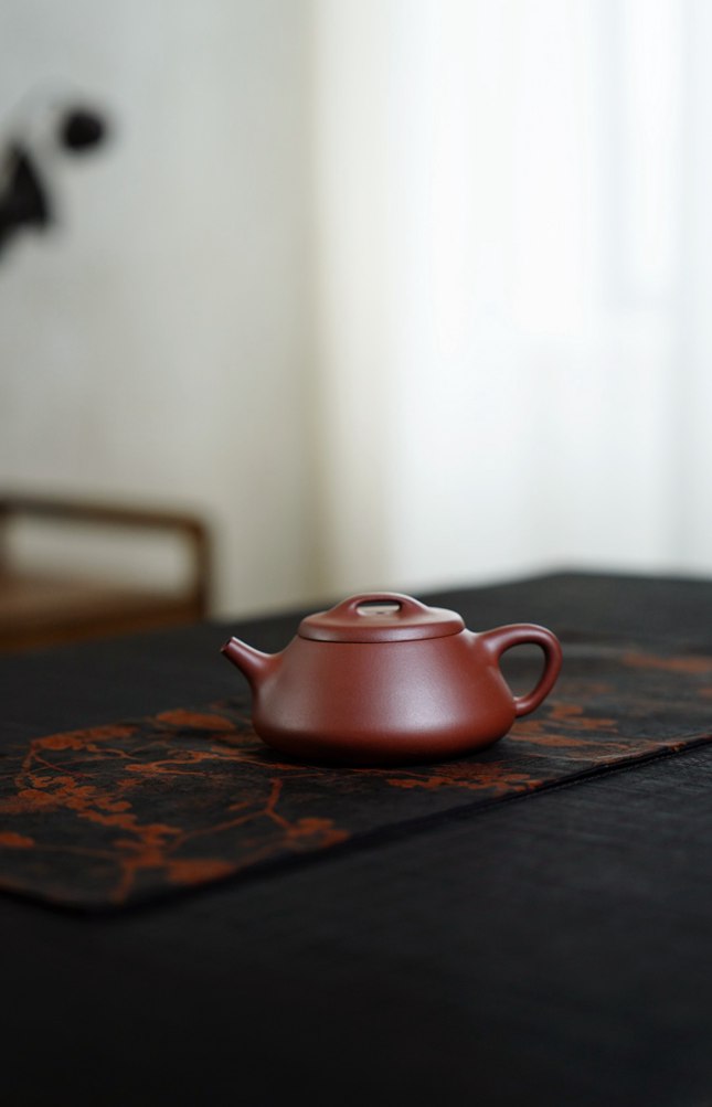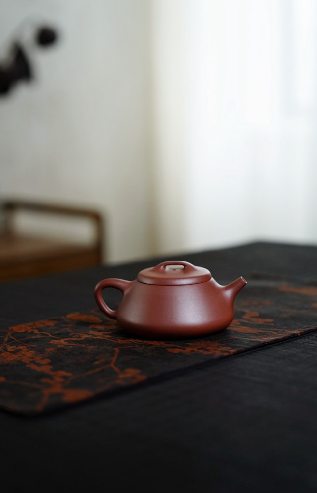 此壶由潘老师精制,在承袭石瓢筋骨之余,化棱角为圆融,藏锋芒于温润。其形制看似平和内敛,实则处处蕴含匠心取舍,可谓一件融古通今、拙中见精的紫砂佳作。