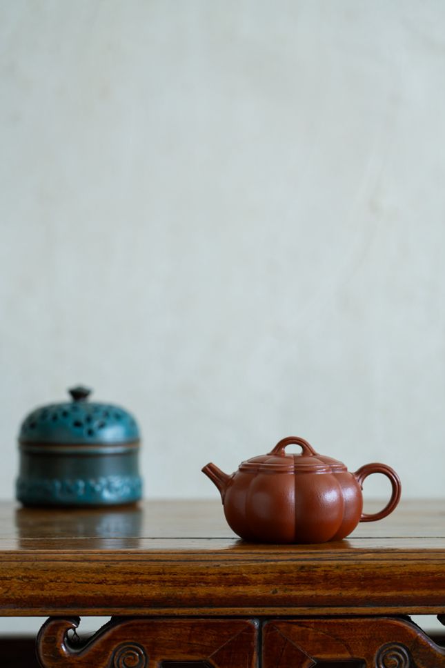 【唯古】壶以寅春朱砂为骨,经蒋老师之手,化作掌心一方温润天地。泥色如晨光初染,朱中透暖,光泽含而不露,华贵隐于朴拙之中。壶名“唯古”二字,既是对千年陶艺的虔诚致敬,亦是对返璞归真生活哲学的轻盈咏叹。