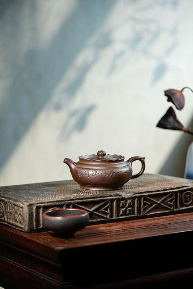 莲花僧帽壶不仅是一件工艺精湛的茶器,更融合了方圆的哲学与禅意的美感。它于细节中见精神,于古朴中显灵动,堪称紫砂艺术中形、工、料、火完美结合的典例,令人观之回味,用之清心。