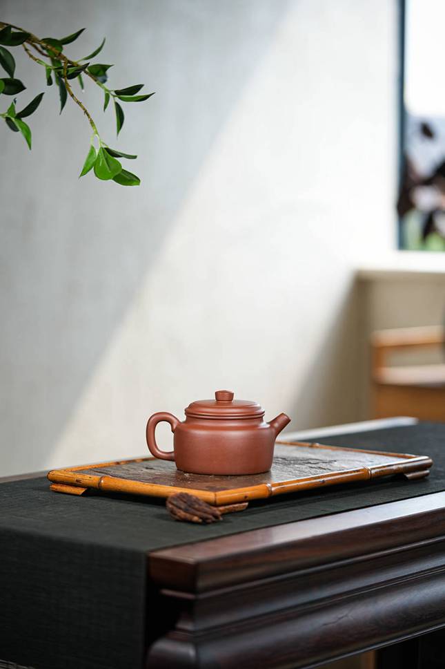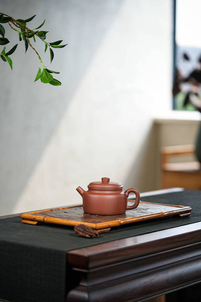 此壶以珍贵底槽清泥为胎,泥质温润,200cc容量宜茶宜赏。作者李老师作为国家级工艺美术师,在承袭古韵之余,更赋予德钟壶当代的审美表达,使传统器型在沉稳中焕发新生,恰如君子怀德,器以载道,历久弥新。