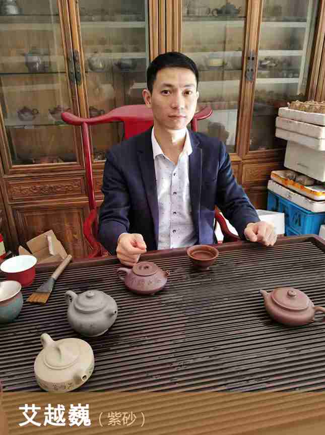 1987年10月出生于江西临川,2006年进修于景德镇陶瓷艺术学院,自幼喜爱书法与绘画,对艺术创作有着浓厚的兴趣。2009年来到江苏宜兴,对紫砂产生浓厚的情感,开始学习陶刻与紫砂装饰创作,在同行们的相互探讨与指导下有了长足的进步,又对紫砂的装饰有了较深的研究与创新。2010年创办了艾越巍陶艺工作室,。作品注入了个人情感,注重图案的变化与细节的处理,开创了自己独特的风格,深受紫砂藏友的喜爱。