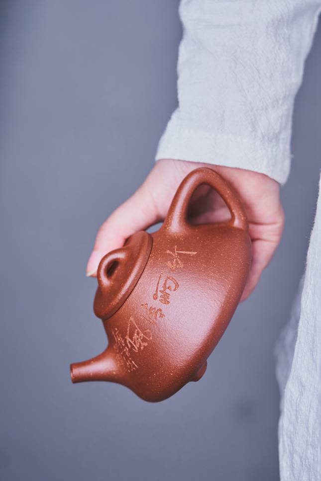 壶身刻绘由研究员级高级工艺美术师何老师执笔创作,以刀代笔,金石意趣盎然。山水、竹石或诗文等题材,在其精雕细琢下与壶体浑然一体,既增添了人文意境,又升华了艺术格调,使紫砂器的工艺之美与书画之韵相得益彰。