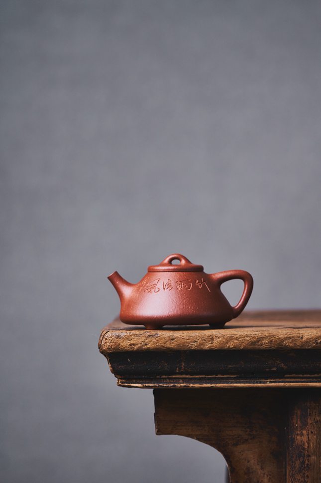 泥料选用原矿优质降坡泥,胎骨坚实而温润,色泽醇和古朴。此泥透气性佳,易于泡养,日常使用中茶汤滋育,很快便能显露出如玉般的光泽与润度,水色日渐丰腴,愈用愈见雅致。