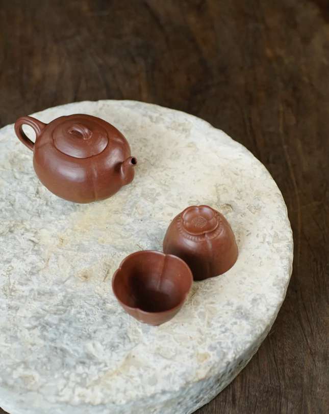 几千年人类最古老的陶瓷工艺在紫砂上重新焕发生机,当代的审美视角下融合古老的工艺放法,使得整体视觉上古拙天真而又不失现代审美法度。在茶道应用上与千年古树茶相映成趣,意境真实而又具有穿越感。