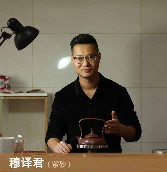 穆译君(奕君,新一代优秀青年陶艺家。1989年出生于宜兴,其母钱爱华是蒋蓉大师的亲侄女,杰出紫砂艺术家。其父穆明龙为“穆氏明砂”创始人,自幼在紫砂艺术圈里耳濡目染,倍受熏陶,对紫砂壶艺有着特殊的灵气和悟性。启蒙师从工艺美术师吉春萍先生学习制壶,再拜江苏省陶瓷艺术大师、江苏省工艺美术大师、正高级工艺美术师史小明先生为师学习深造,在壶艺的工艺美术设计和制作方面更上了一层楼。尤擅全手工制壶,圆器、花器俱佳。所作壶型,于传统风格中变幻出时代的风彩;从当代生活的元素中展现出传统艺术的魅力。作品美观新颖,细节严谨,大气磅礴。既有强烈的几何图型之美,更有深邃的茶禅哲理之韵。由于其年轻而制壶工艺出众,被国家一级博物院特邀为当代宜兴优秀中青年陶艺家作品展的现场制壶人,当地的省、市主流媒体均给予了详细而显著的报道,受到社会各界的好评。