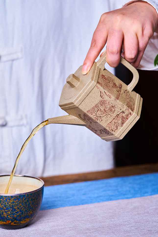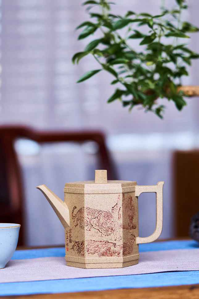 【高六方】壶,以家藏原矿芝麻段泥精制而成,泥色温润如脂,颗粒隐现其间,古朴中透出雅致韵味。壶体容量约300cc,品玩实用皆宜。此作为研高许老师匠心之作,以经典六方为骨,线条刚柔并济,呈现浑厚大器的气度。