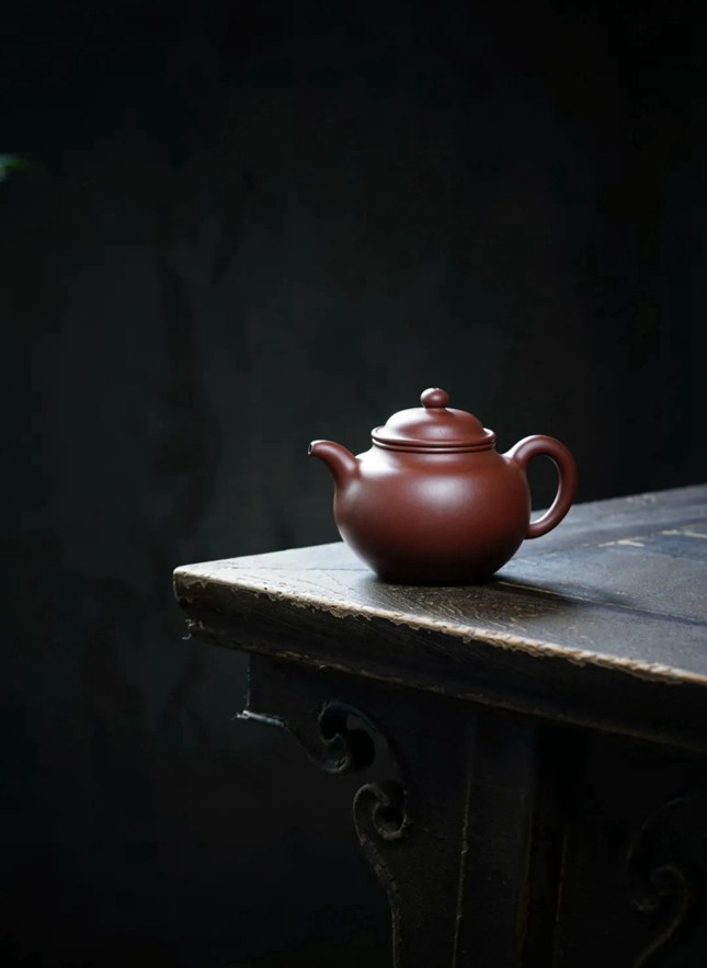 “掇只壶”是紫砂壶造型中一件经典壶式,其造型像是把许多球状和半球状堆积到一起。紫砂史上,以清中期邵大亨所制掇只壶最为著名,故由邵大亨所制掇只壶器型又被称之为“大亨掇只”。此件拍品延续了“大亨掇只”造型简练、大方,球腹,矮颈的特征。整壶色泽丰莹,造型精致,制作精良。身筒圆润如宝珠,壶钮亦作同式,口盖直而紧缝,一弯小流前敛,壶把圆弧有力。整体比例得当,极具视觉美感。