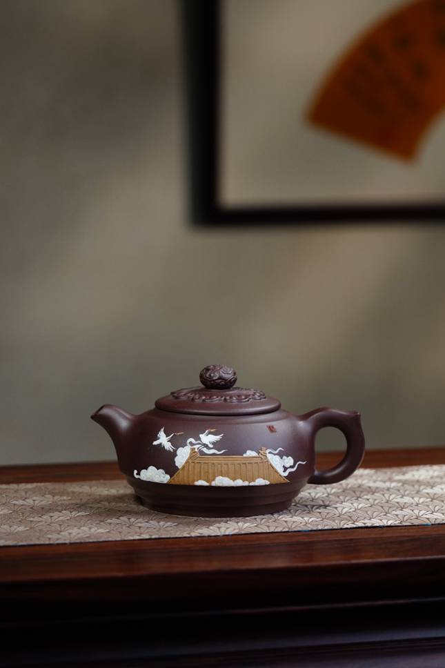 此壶以“祥云如意”为题,巧妙融合传统祥瑞意象。壶身与流、把的过渡自然流畅,宛若云气流转,绵绵不绝;如意纹饰勾勒于壶钮或肩线,细节处寄托着吉祥顺遂的祈愿。祥云自古便是中华文化中寓意吉祥的符号,此壶将其化为有形之器,传递着安宁与美好的祝福。
