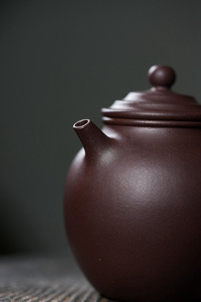 流与把的搭配,彰显了作者对力学与美学的精妙把握。短嘴昂然挺峭,出水如柱,收水利落;耳形壶把圆转顺和,贴合掌心,端握稳重舒适。壶内精巧球孔,过滤茶渣通透无阻,内壁光润工整,处处流露着手工锤炼的虔诚与功底。此壶不仅是一件观赏雅器,更是茶人日常沏泡的得力良伴。