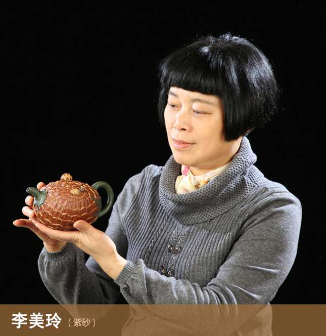 李美玲在三十多年的时间里由名师的精心传授、严格督促,加之本人的刻苦钻研和感悟,逐渐形成了自己的独特风格,制壶技艺基础扎实,不仅善于制作几何形体类,还对自然形体的塑器和花器有着独到之处,几乎是全面发展,作品都采用纯手工制作。犹已薄胎为主,在继承传统中突破创新,追求新的境界和高度,使壶具有一定的文化品位和艺术造诣。