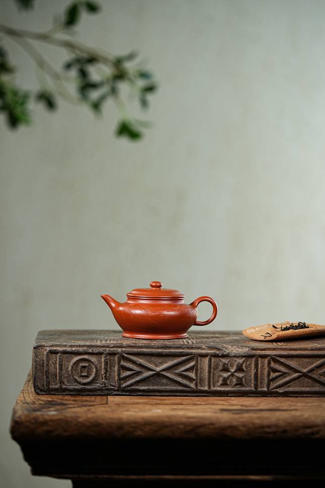 整器集实用雅致于一身,既有容茶纳水之能,又蕴藏“有容乃大”的东方哲思。执壶在手,既可感受朱泥胎体温润,亦能在茶事日常中,体味一份庄严宁静的器格之美。