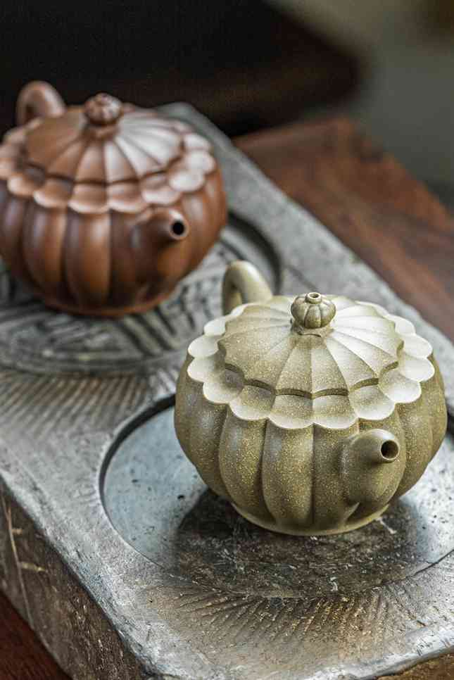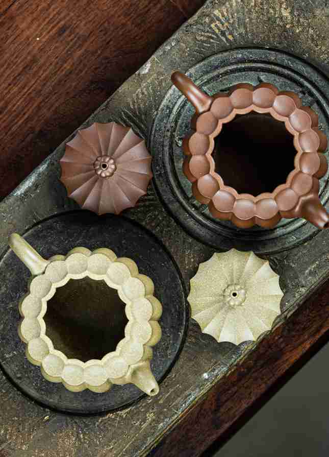 禅墩·唯风以菊瓣为形,筋纹起伏如秋风拂过。虚实凹凸间光影流转,紫泥沉稳、青段清雅。线条飘逸似少女裙裾,将风的灵动凝于紫砂,气韵出尘,可闻秋声。