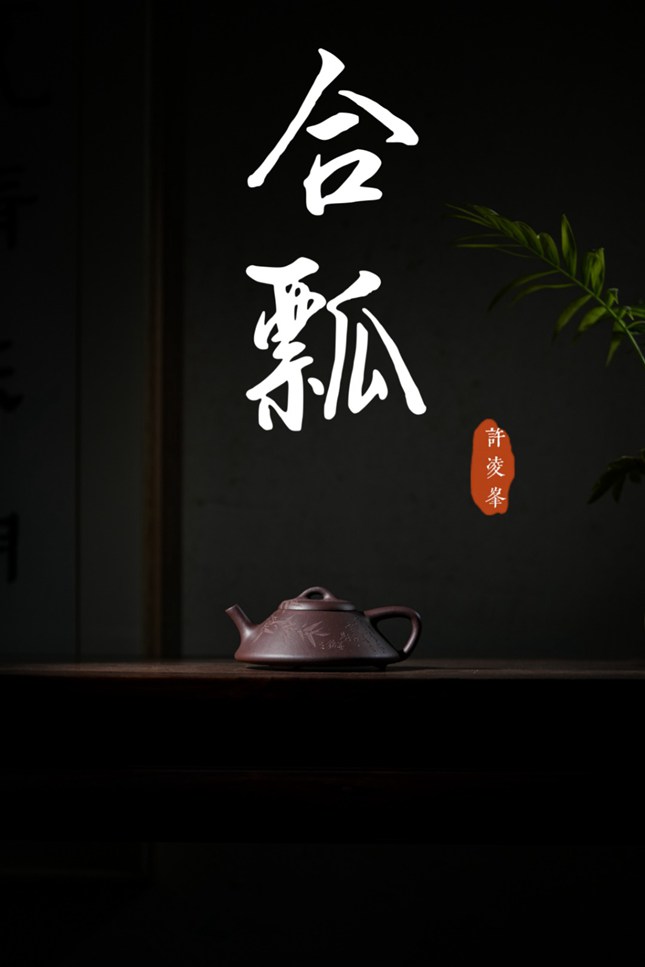 这把由实力派陶手许凌风老师精心抟制的“合瓢”壶,以纯净紫泥为胎,容量盈盈一握,仅155cc,却蕴藏了极为丰沛的文人格调。壶身造型在经典基础上演化,线条舒展圆融,扁圆腹与流把的弧度呼应,暗合“合瓢”之名中天人合一的和谐之意。凝神细观,紫泥的颗粒在光影下若隐若现,握于掌中,是温润的分量,也是岁月沉淀的安稳。