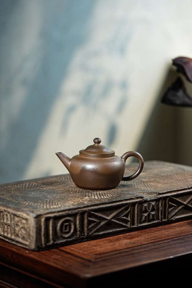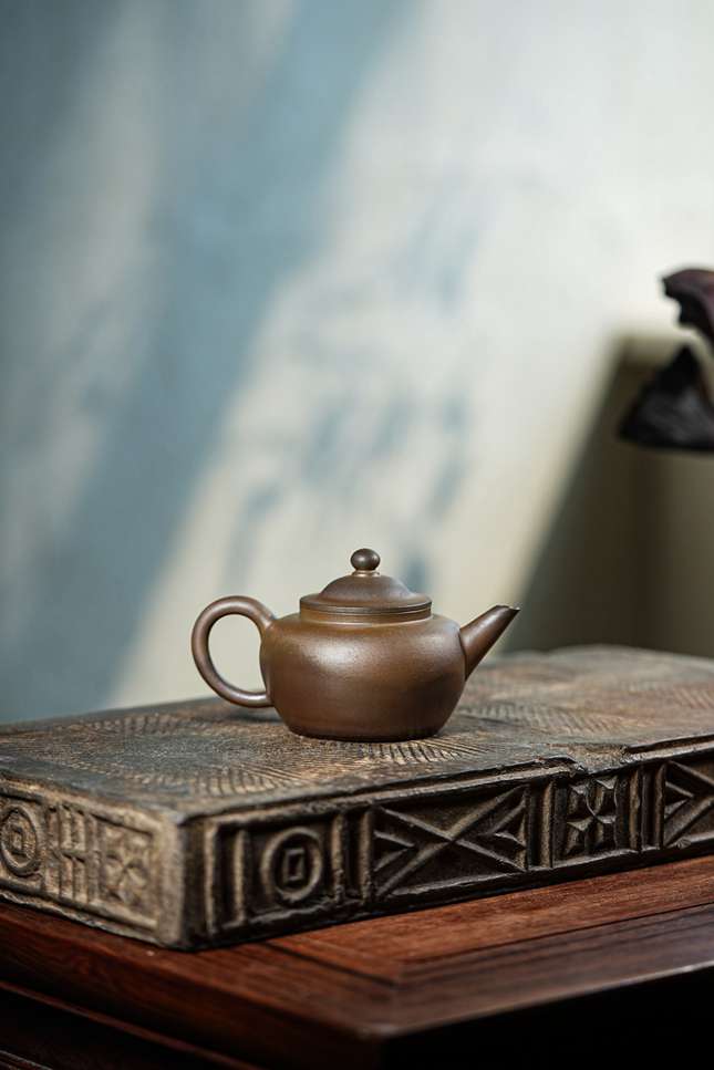 置于茶席之上,它既是得心应手的品茗良伴,150CC的黄金容量恰适二三友人共品佳茗;细观其色,柴烧特有的火痕与朱泥天然细腻的质地交织成章,仿佛将时光的纹路凝固于器表。每一次冲泡都是一次与自然窑火的对话,让茶事更添几分返璞归真的雅致意趣。