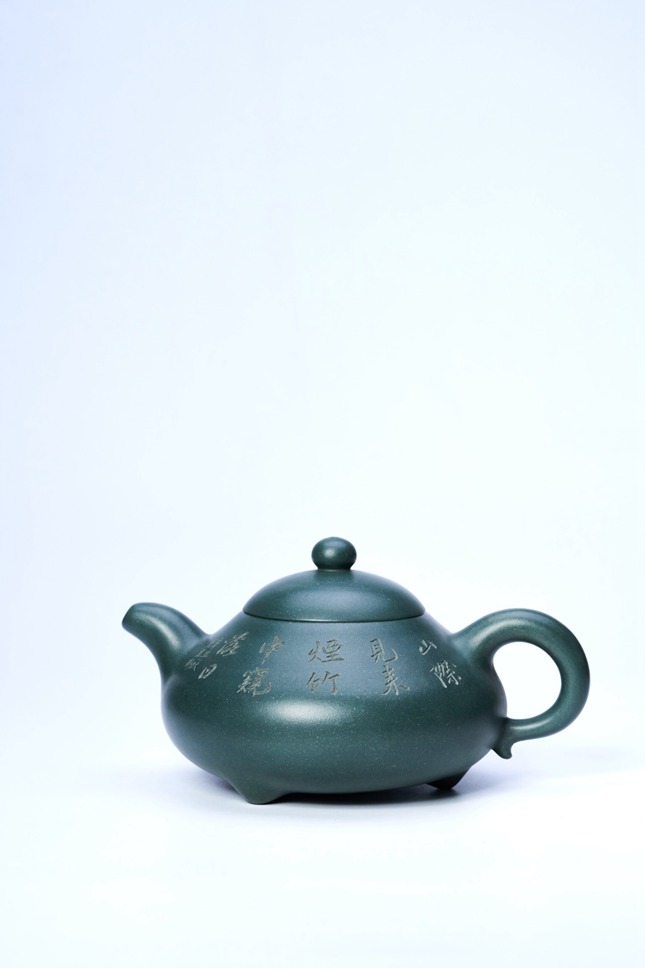 此壶曲线舒缓如女子身姿,三足托起丰盈体态,温婉从容。壶把弧线自然垂下又扬起,似挽起的发髻,高傲而不做作。苏门答腊青泥料沉静内敛,整体散发着东方女性的柔美与矜持,静谧而有生命力。