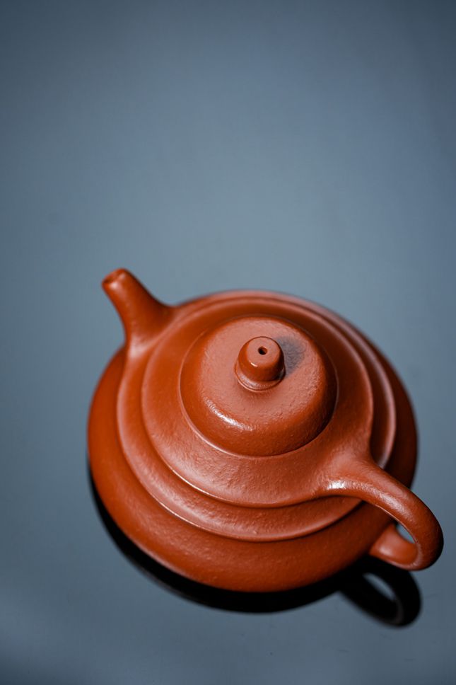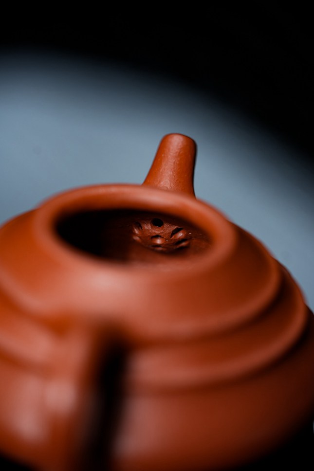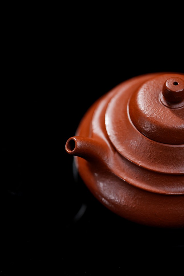 朱泥致密如瓷,聚香提韵,适配乌龙茶、红茶等茶品,泡茶时茶香馥郁不涣散。茶烟轻扬,朱泥映着茶汤暖光,盘筑纹理里的手作温度缓缓晕开,每一层褶皱都是时光与匠心的回响。这不仅是实用的泡茶佳器,更是融古法技艺、东方风雅与吉祥寓意于一体的雅器,可赏玩、可珍藏、可传承,是茶席上兼具韵味与风骨的美学载体。