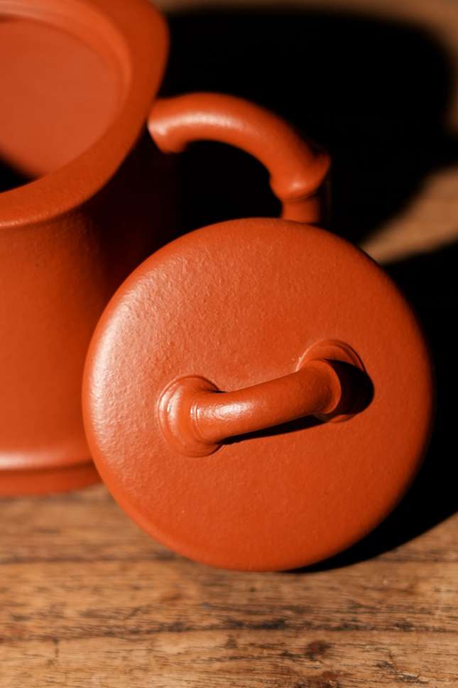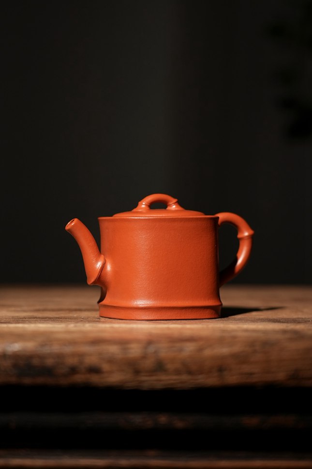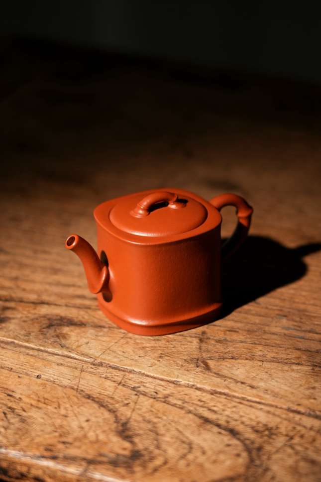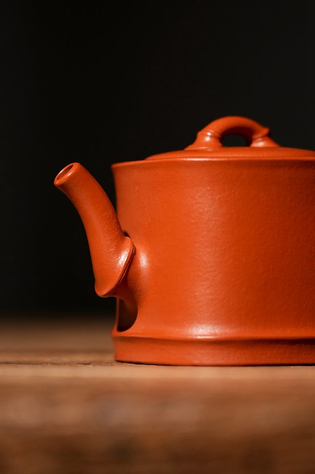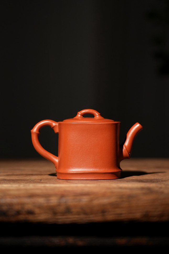 实力派紫砂艺人董俊峰,师承冯伯明,得省大师范洪泉悉心点拨,将传统紫砂技法与文人意趣深度融合,每一件作品都藏着扎实功底与独到审美。这把「竹露」壶,便是他以竹为喻、以泥为媒的诚意之作,140CC的精巧体量,朱泥为胎,既是适配日常品饮的实用之器,亦是彰显格调的案头雅藏。