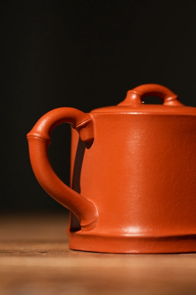 实力派艺人董俊峰所制「竹露」紫砂壶,140CC朱泥材质,师承名家,以自然老竹为原型,壶型方中寓圆、细节精巧,胎质温润易养,兼具实用与收藏价值,承载竹之君子情怀与东方雅致。