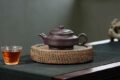 壶身形体饱满、泥色温润,方圆共体。壶身呈浑四方体,四面开窗。壶嘴、壶把、壶钮与壶身搭配协调、比例匀称,壶嘴出水…